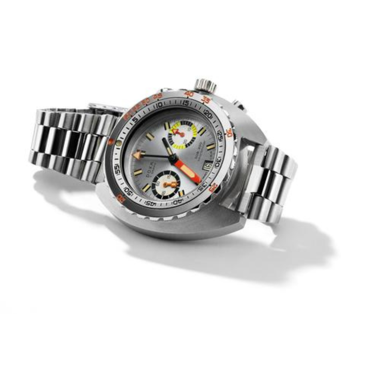 DOXA’s aesthetic credentials were cemented by an instant classic in 1957: a minimalist, Bauhaus-inspired “Grafic” dress watch collection. Ten years later, a purpose-designed, professional-grade SUB dive watch - the first accessible to the growing community of sports divers - sealed technical credentials. The SUB was developed with diving-legend Jacques-Yves Cousteau and introduced radical innovations that made it the benchmark for military and professional divers, even to this day.